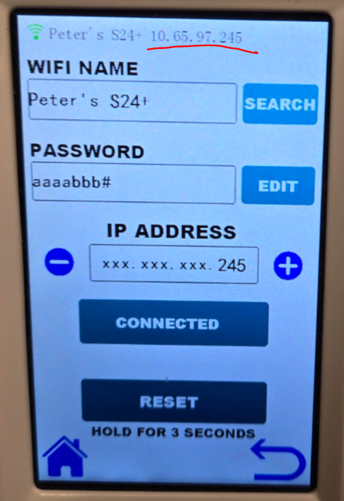 3. The IP address of the cutter will be at the top of the screen: